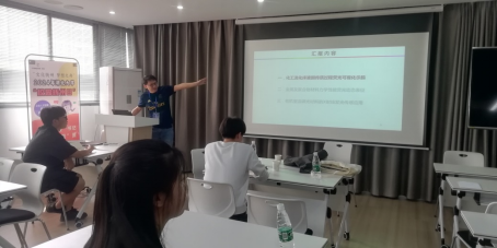 赵教授以有机发光材料的激发态能量失活耗散图为引子,分析了荧光发光和室温磷光发光的特点和优势,随后介绍了溶液法制备吸附式纳米发光粒子实现化工流化床液固传质过程中的荧光可视化示踪、金属及聚合物材料力学性能荧光可视化表征、聚合物损伤/自愈合过程荧光可视化表征、有机室温磷光材料的耐高温X射线发光传感应等多方面内容。重点介绍了具有普适性的理性多酯化有机磷光分子设计策略:对刚性平面磷光核心(例如,以结构独特的晕苯为构建单元)进行多酯化改建,引发磷光分子光物理过程中单线态与三线态跃迁偶极矩大幅提升,从而实现一系列可见光激活型的高效率UL-RTP薄膜材料(蓝光激发下,寿命长达2.01秒,效率高达35.4%)。基于超高性能的UL-RTP薄膜材料还开拓了其在延时白光照明及余辉加密技术中的应用,为设计高性能UL-RTP分子的设计提供了新途径和理论基础。之后赵教授就相关研究生工作进行交流和讨论,对实验的可行性法案提出建议,并鼓励员工要勇敢去尝试,怀着好奇的心境开展研究,不放过细节,大胆求索才会有惊奇发现。