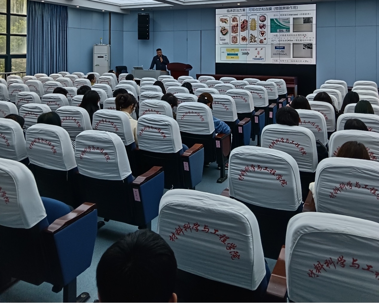 王毅教授的报告题目为“医用纳米纤维表面润滑防粘连技术的开发”。报告中,王毅教授从研究背景与意义即术后粘连防治是国家重大医学临床需求出发,讲授了组织粘连形成的摩擦学过程;结合自己在生物摩擦学与表面工程,包括生物润滑材料的研发与应用、医疗器械的表面功能化改性、抗菌材料表界面设计的丰富研究经验,重点讲授了纳米纤维膜的表面水合超润滑改性的策略及其在临床医学产业化过程中遇到的实际困难和潜在的解决方案。王教授结合具体实例讲解物理方法构建超滑界面、化学方法构建超滑界面体系,深入浅出、生动幽默地讲授接枝后纤维膜具有显著水合润滑的摩擦学特征及其物理化学机理,使crown皇冠体育平台师生受益匪浅。报告尾声王教授分享了“我的学术奋斗之路,经验分享”,讲述自己直面失败与挫折、在逆境中保持自信、天助自助者的成长经历。交流环节,crown皇冠体育平台师生对王教授的工作十分感兴趣,大家积极提问,王教授耐心详细解答。