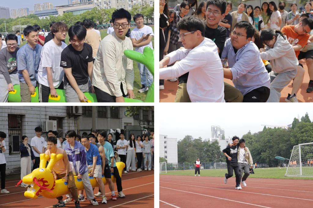运动会项目共有五项:解手链、旱地龙舟、两人三足接力、集体跳绳和拔河。师生齐挥汗,合力争佳绩。最终,高材2101班、高材2204班、器件2201班分别取得本科生组前三名;专硕2201/2202联合、23材料学硕班、专硕2203班分别取得研究生组前三名。
