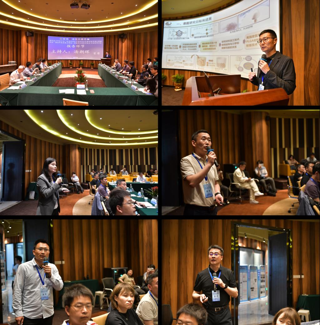 报告环节,中科院长春应用化学研究所研究员孙海、华中科技大学教授杜莹莹、长春圣博玛生物材料有限公司总监丛占福技术、湖北中部医疗科技有限公司技术总监唐三、吉林大学第一医院院长刘彬分别汇报,随后各单位围绕项目的执行情况、未来规划及课题各单位之间的分工协助开展了深层次的交流与探讨。