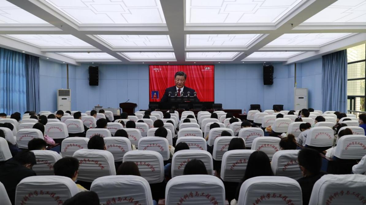 10月16日,中国共产党第二十次全国代表大会隆重开幕。校党委副书记祝欣与crown皇冠体育平台领导班子成员、师生党员及团学骨干一起集中收看了二十大开幕会,认真聆听习近平总书记所作的重要报告。开幕会结束后,crown皇冠体育平台师生党员开展了学习交流,对总书记所作的报告进行了热烈讨论。
