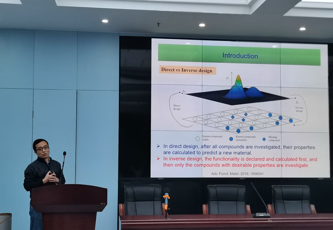 报告中,刘惠军教授先从当代的能源问题着手报告,让同学们对热电材料和拓扑材料有一个初步的了解。接着刘教授向大家介绍了热电材料和拓扑材料的种类,性质及特点,介绍了当今世界大数据、人工智能、机器学习等手段在热电材料和拓扑材料研究研究中的应用。紧接着刘教授先向大家重点讲述了他课题组在机器学习方面研究热电及拓扑材料的方法,以及我们应该如何去学习和使用。在报告中刘教授不断给出示例,这进一步增加了员工的兴趣,同时也增强了员工对报告内容的理解。最后刘教授就机器学习研究的发展前景及材料方面的问题与在场的老师进行了沟通和交流。并对在场员工所提出的问题给予了详细的解答。浓厚的学术氛围让在座让老师和员工都不舍离开,最后,报告会在同学和老师们们热烈的掌声中圆满结束。