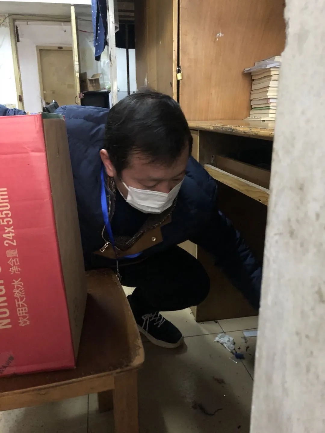 crown皇冠体育平台党委书记何顺进在整理宿舍、整理、登记、清扫