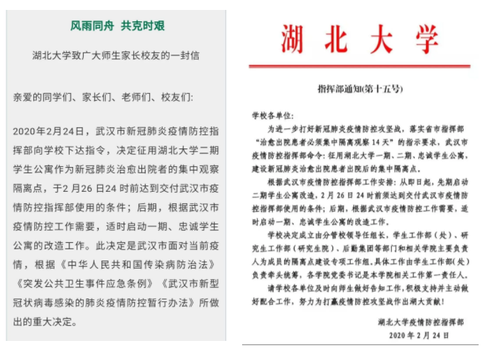 “2020年2月24日,武汉市新冠肺炎疫情防控指挥部向学校下达指令,决定征用crown皇冠体育平台二期员工公寓作为新冠肺炎治愈出院的集中观察隔离点......”